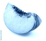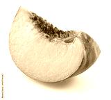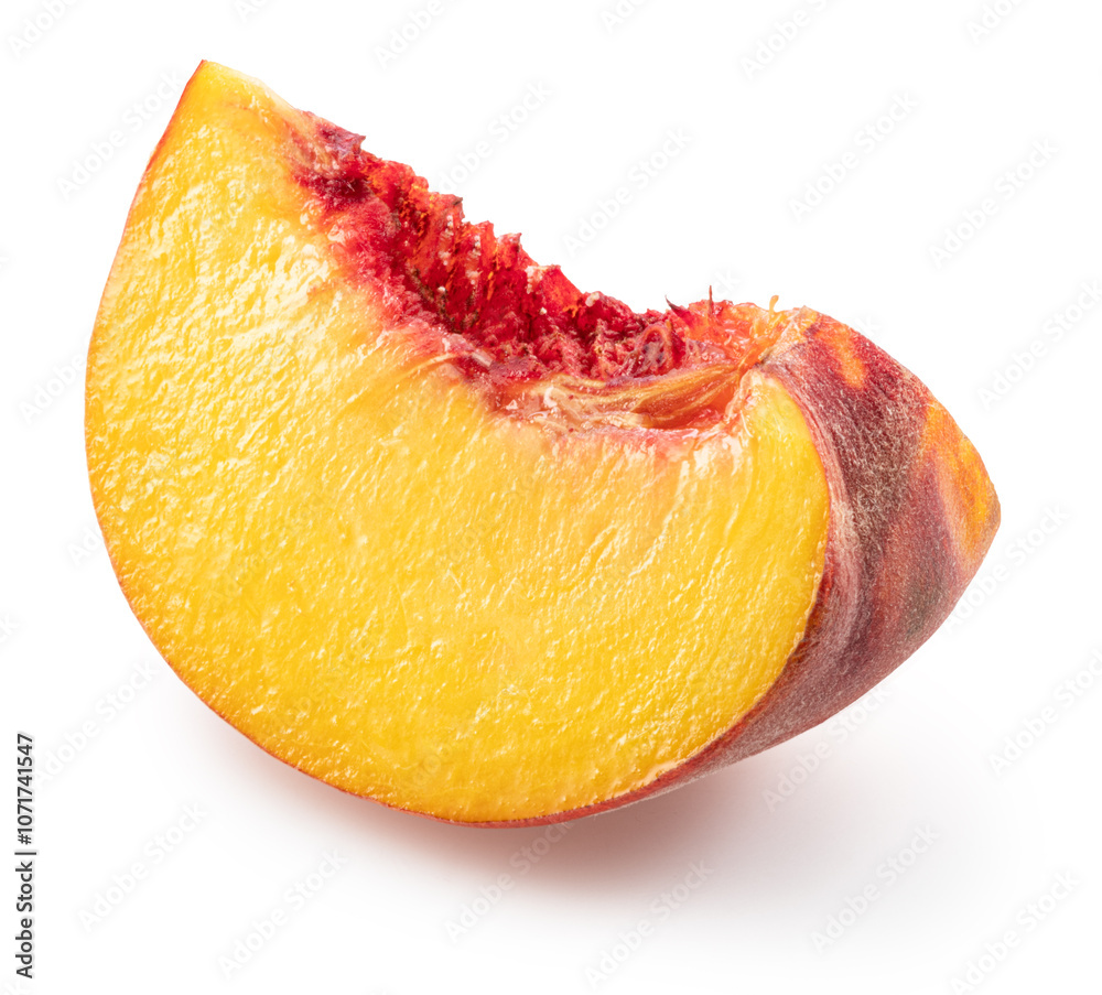 Ripe juicy peach slice isolated on white background. File contains clipping path.