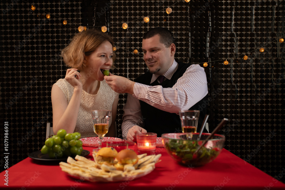 Romantic Dinner, couple enjoying wine together, candlelight dining in evening, romantic celebration of love
