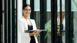 Entrepreneur director working on laptop in modern office. Concept of leadership, efficiency and working in a high-tech business environment.