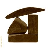 An abstract figure made of wood, isolated on a white background, dark in color.