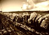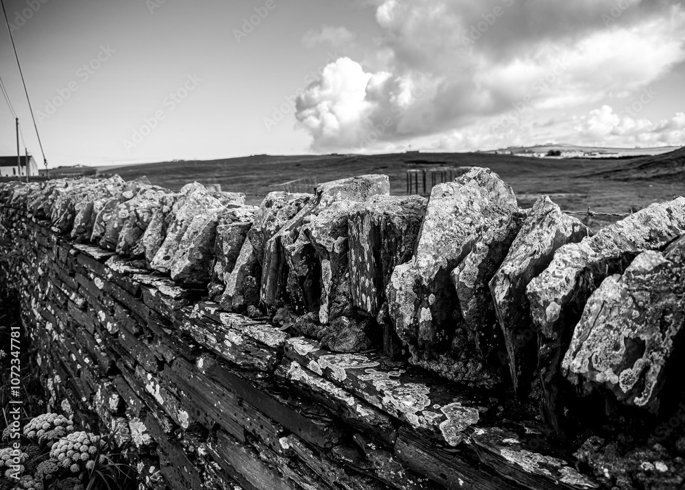 Orkney, Scotland - August 6, 2024: Stone walls on the island of Orkney in Scotland