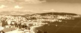Panoramic view of Split and scenic mountains in the background, Dalmatia region, Croatia.