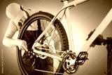 bicycle mechanic adjusting derailleur mechanism on a mountain bike / fahrrad mechaniker beim einstellen einer Gangschaltung an einem mountainbike