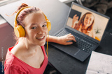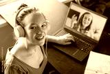 Teen girl Student doing homework on Laptop at home
