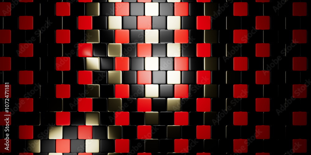 Black and red checkered wall with soft lighting, creating a bold, dynamic visual impact. Perfect for modern decor, adding sophistication and contemporary edge to any space.