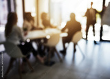 Presentation, blur and learning with business people in meeting for financial, speaker and company valuation. Investment report, asset management and budget portfolio with employees in office