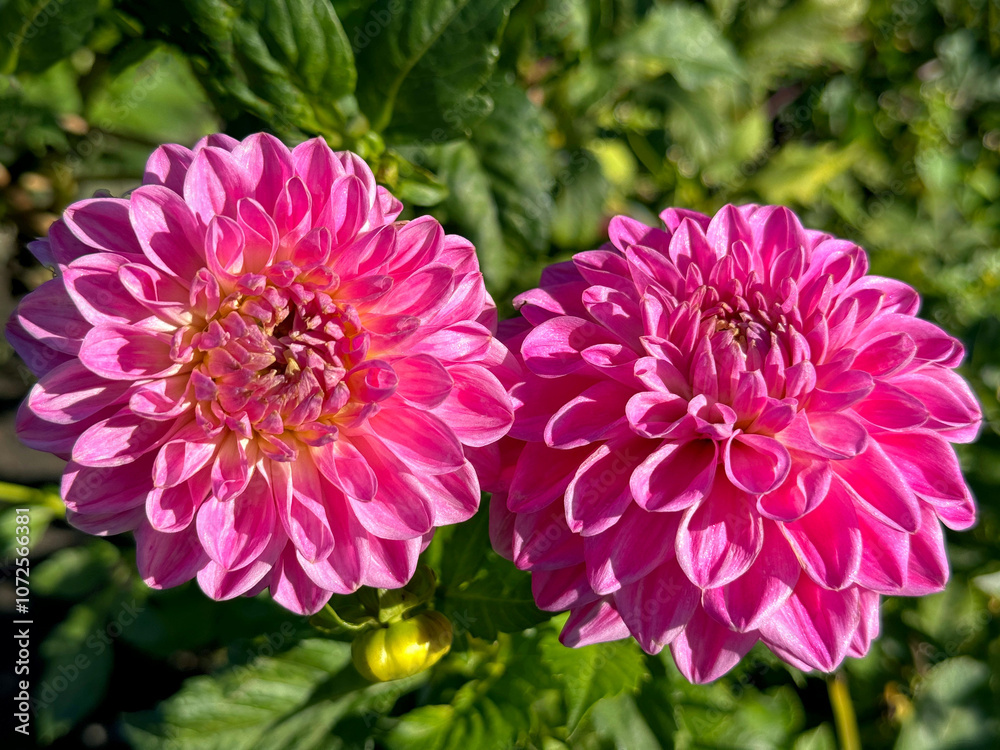 Two dahlia pink flowers in garden