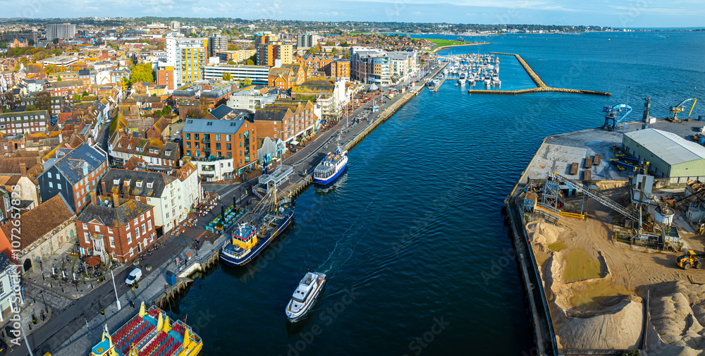 Aerial view of Poole, a coastal town in Dorset, southern England, known for its large natural harbour and sandy beaches