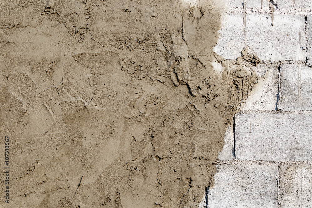 plasterer concrete worker at wall of house construction