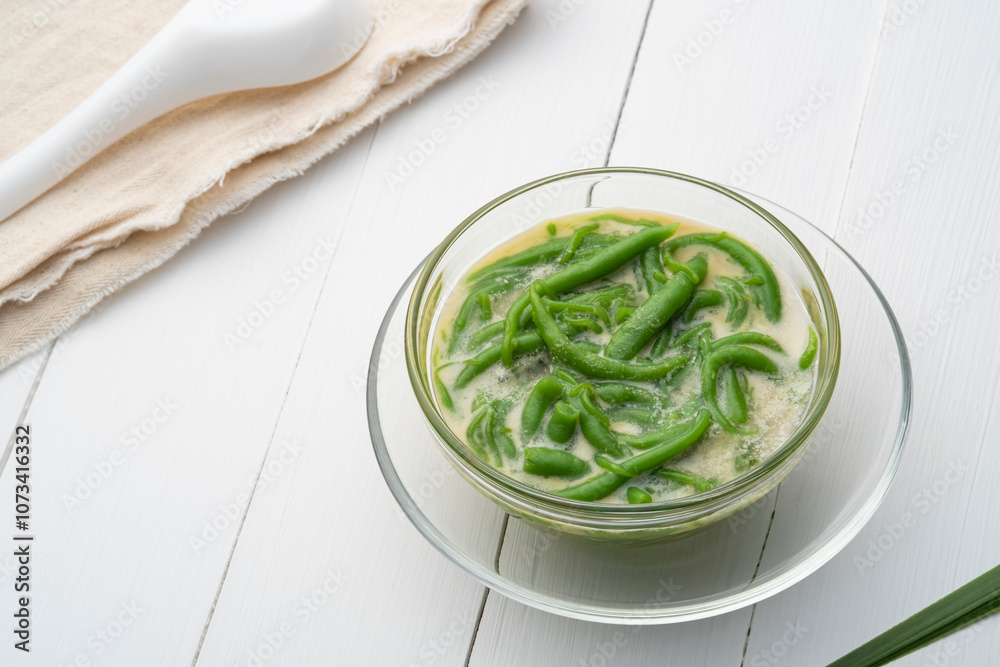 Lod chong,Thai dessert made from flour in palm sugar syrup and coconut milk