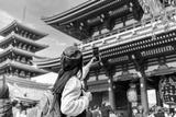 Young female tourist taking a photo of sensoji temple at Asakusa district in Tokyo, Japan