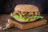 Bagel with stew and fried onion
