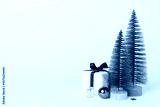 Small christmas trees with decoration on concrete background