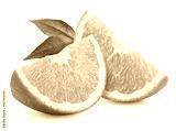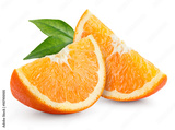 Orange fruit. Slices with leaves isolated on white.