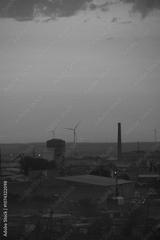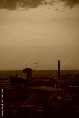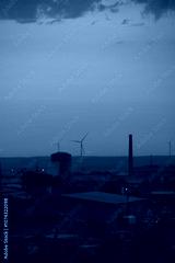 An Urban Landscape Featuring Wind Turbines Bathed in the Beautiful Warm Glow of Sunset