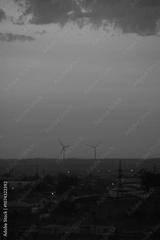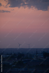 The Beautiful Wind Turbines Gracefully Silhouetted Against a Serene and Misty Sunset Sky
