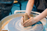 hand of a teenage girl sculpts from clay on the potter's wheel .