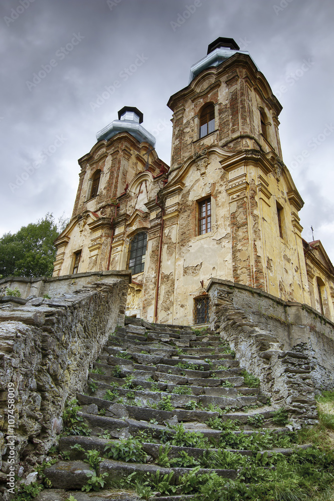 Ruins of the abandoned Church of the Visitation in former village Skoky