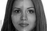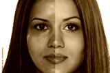 Comparison portrait of a exotic beautiful woman without and with makeup