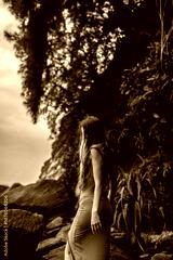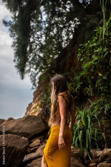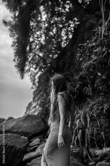 An Elegant Model Gracefully Posing Amid Nature by the Beautiful and Peaceful Shoreline
