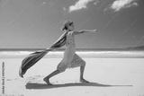 blond girl with towel at summer beach