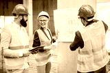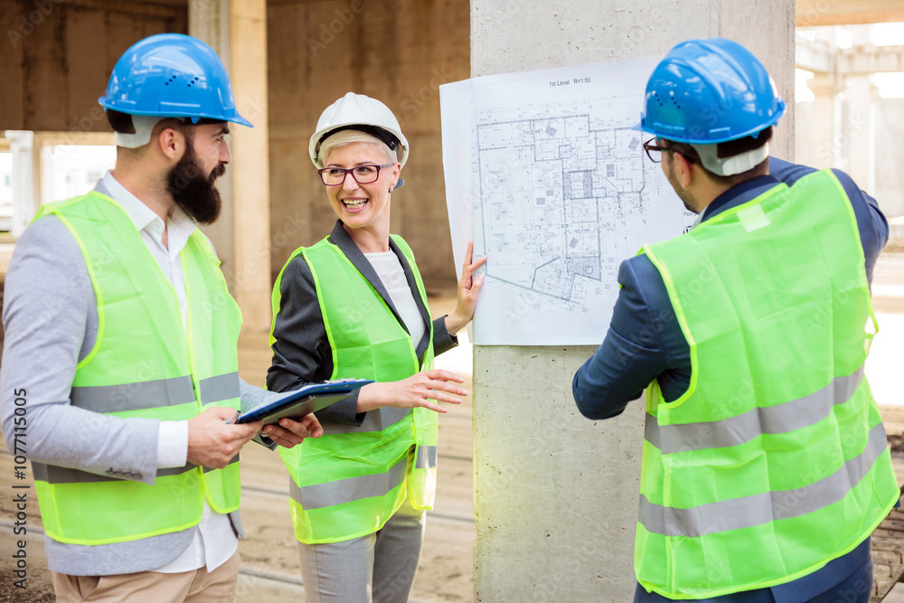 Team of young architects and business partners discussing and arguing during a meeting on a construction site.