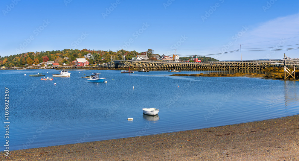 The unique, granite Cribstone Bridge, Bailey Island Bridge, connecting Orr's and Bailey Islands in Harpswell, Maine