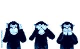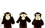 Three wise monkeys. See no evil, hear no evil, speak no evil cartoon monkeys