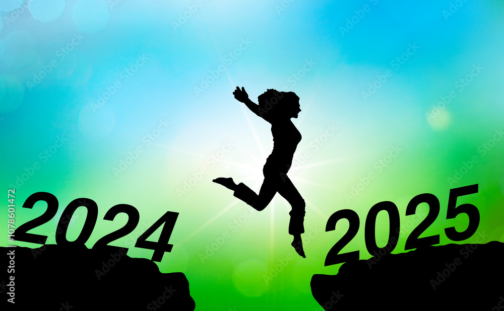 Sprung einer Person ins Jahr 2025 als Silhouette