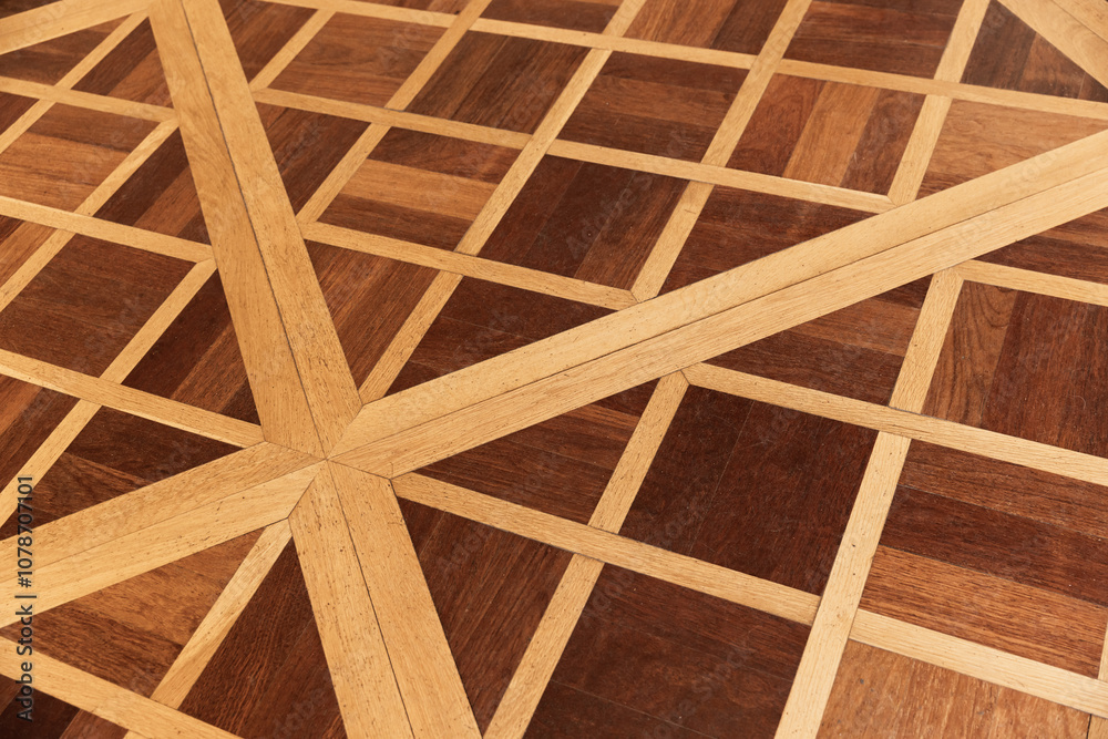 Vintage parquet flooring with geometric ornament. Background photo