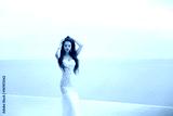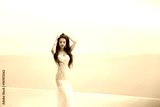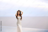 Beautiful fashion bride girl in beaded wedding dress. Summer hol