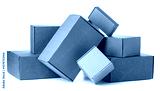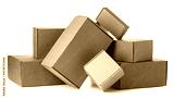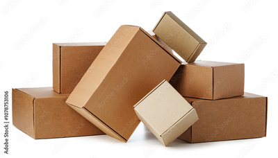 Stacked brown cardboard boxes in various sizes arranged on a white background