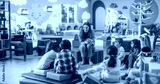 Happy Kindergarten Pedagogue Having a Conversation with Kids, Using Enthusiastic Teaching Methods in a Modern Colorful Kindergarten. Female Educator Stimulating Linguistic and Social Skills