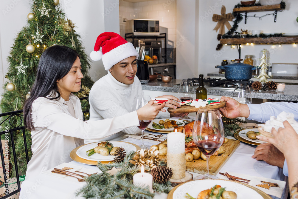 Latin Teenagers from Mexican family having Christmas dinner at home in Mexico Latin America, hispanic daughter and son on holidays