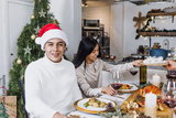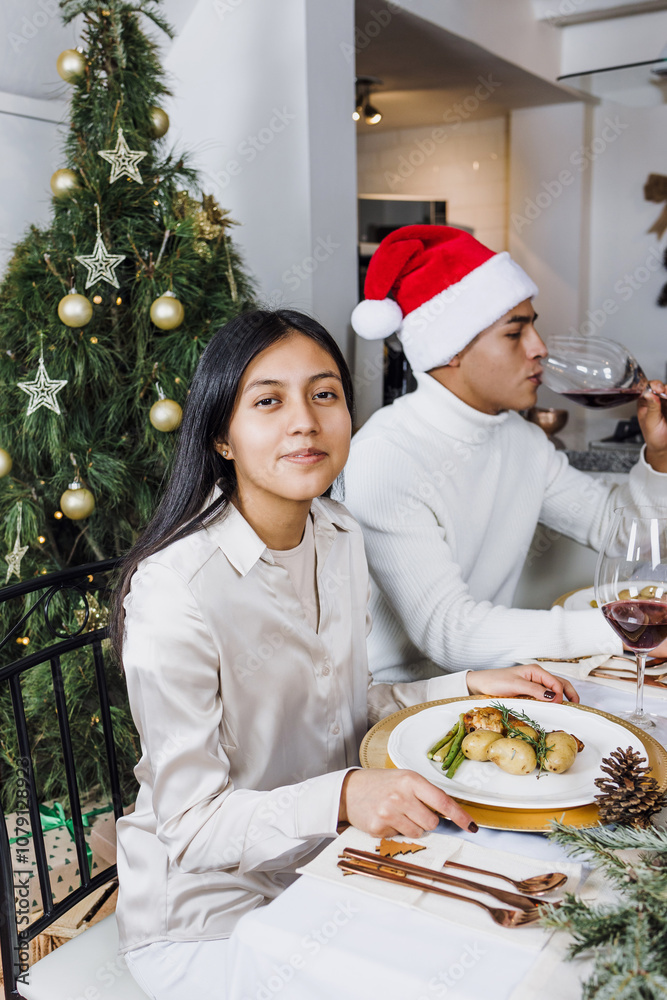 Latin Teenagers from Mexican family having Christmas dinner at home in Mexico Latin America, hispanic daughter and son on holidays