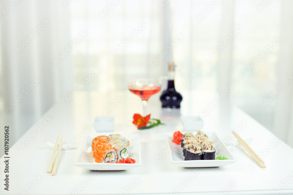 Sushi and rolls.