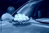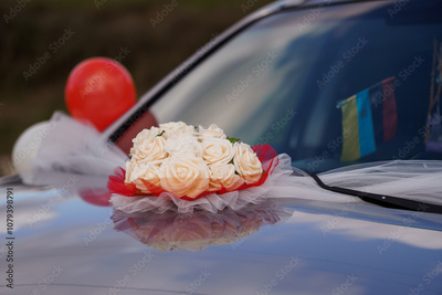 Elegant Wedding Car Decoration with White Roses and Colorful Balloons