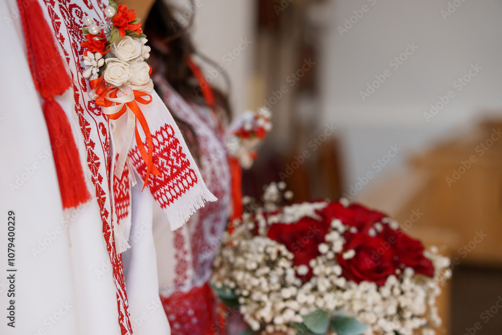 Traditional Ethnic Attire with Floral Arrangement at Cultural Celebration