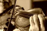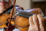 A Close-Up of a Musician Playing a Classic Violin in Soft Lighting