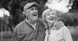 Smile, love and bonding with old couple in park for retirement, happiness and wellness. Support, date and romance with senior man and woman in nature for partner, marriage and peace together