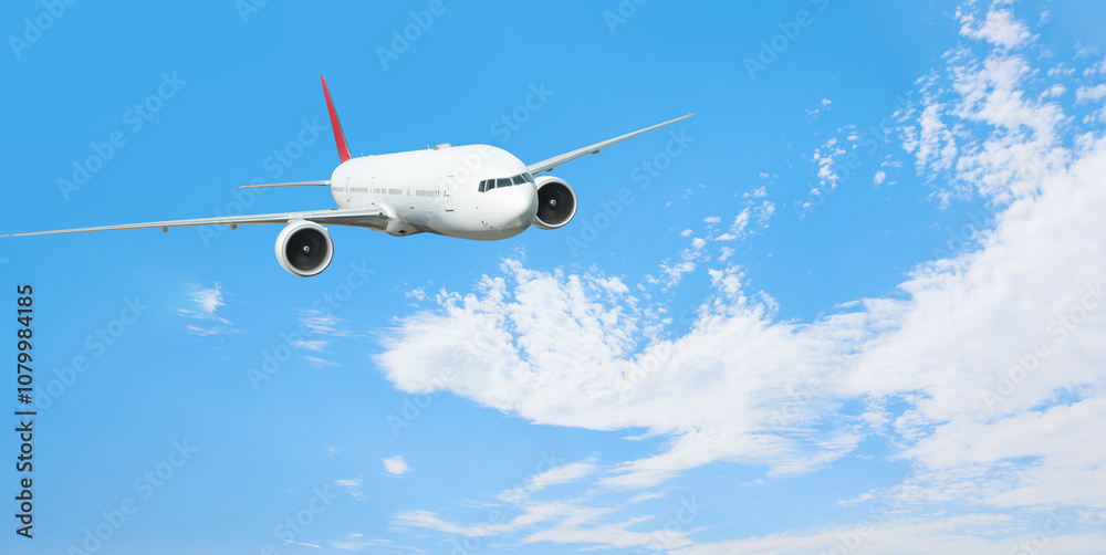 White passenger airplane flying in the sky amazing clouds in the background - Travel by air transport