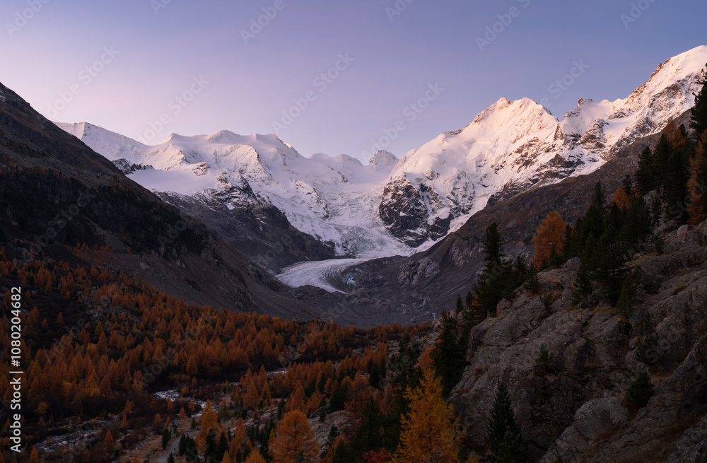 The Morteratsch glacier and the famous Biancograt just before dawn.