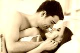 Loving couple in bed.