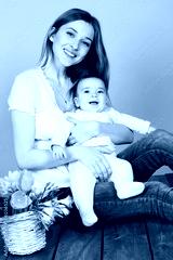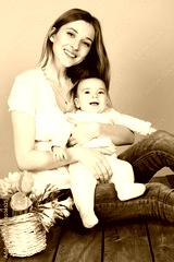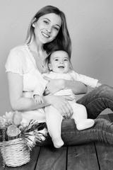 Pretty smiling mom with baby boy in studio