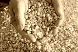 Corn grain in a hand after good harvest of successful farmer