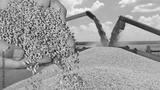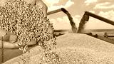 Wheat grain in a hand after good harvest of successful farmer