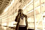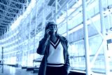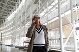 Elderly businesswoman talking on the phone outside a modern office building during daylight hours