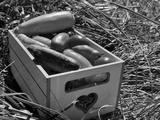 Fresh vegetables tomatoes cucumbers zucchini in a box