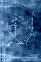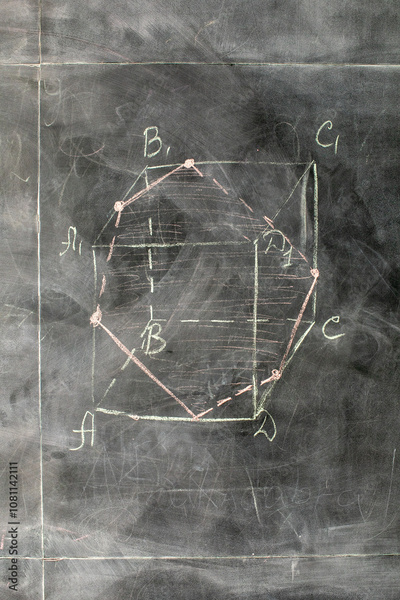Chalkboard geometry drawing illustrating a 3D polygon, ideal for education and back-to-school concepts