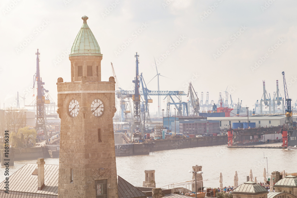 Landungsbrücken Hamburg im Frühling bei Sonnenschein